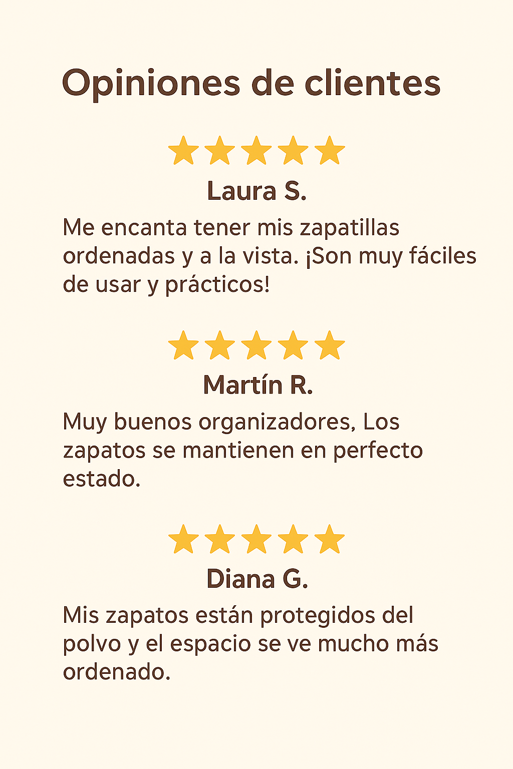 Con nuestras Cajas Organizadoras obtendrás resultados visibles en poco tiempo: más orden y espacio, menos tiempo perdido buscando pares y una experiencia transformadora desde el primer uso.
